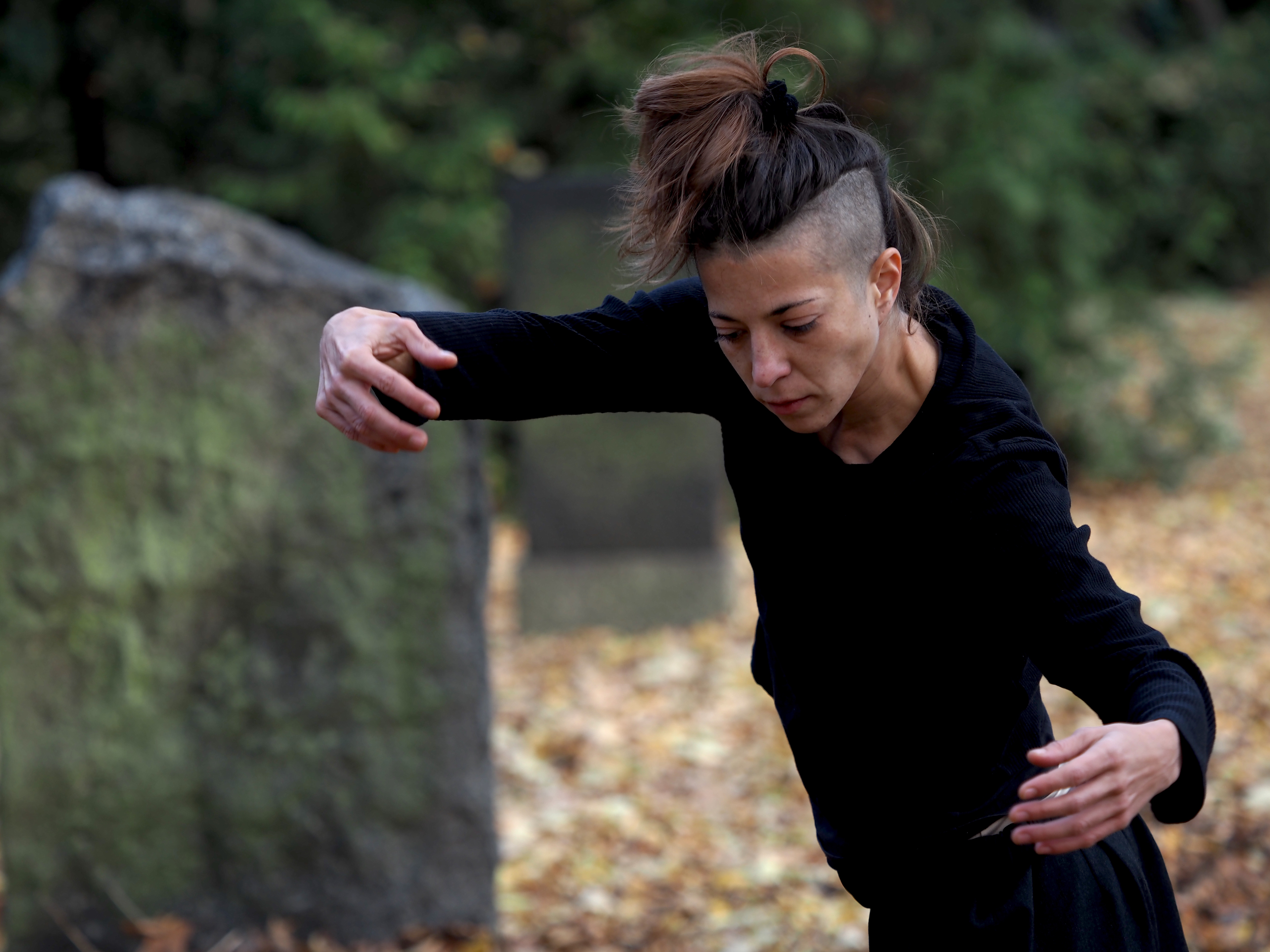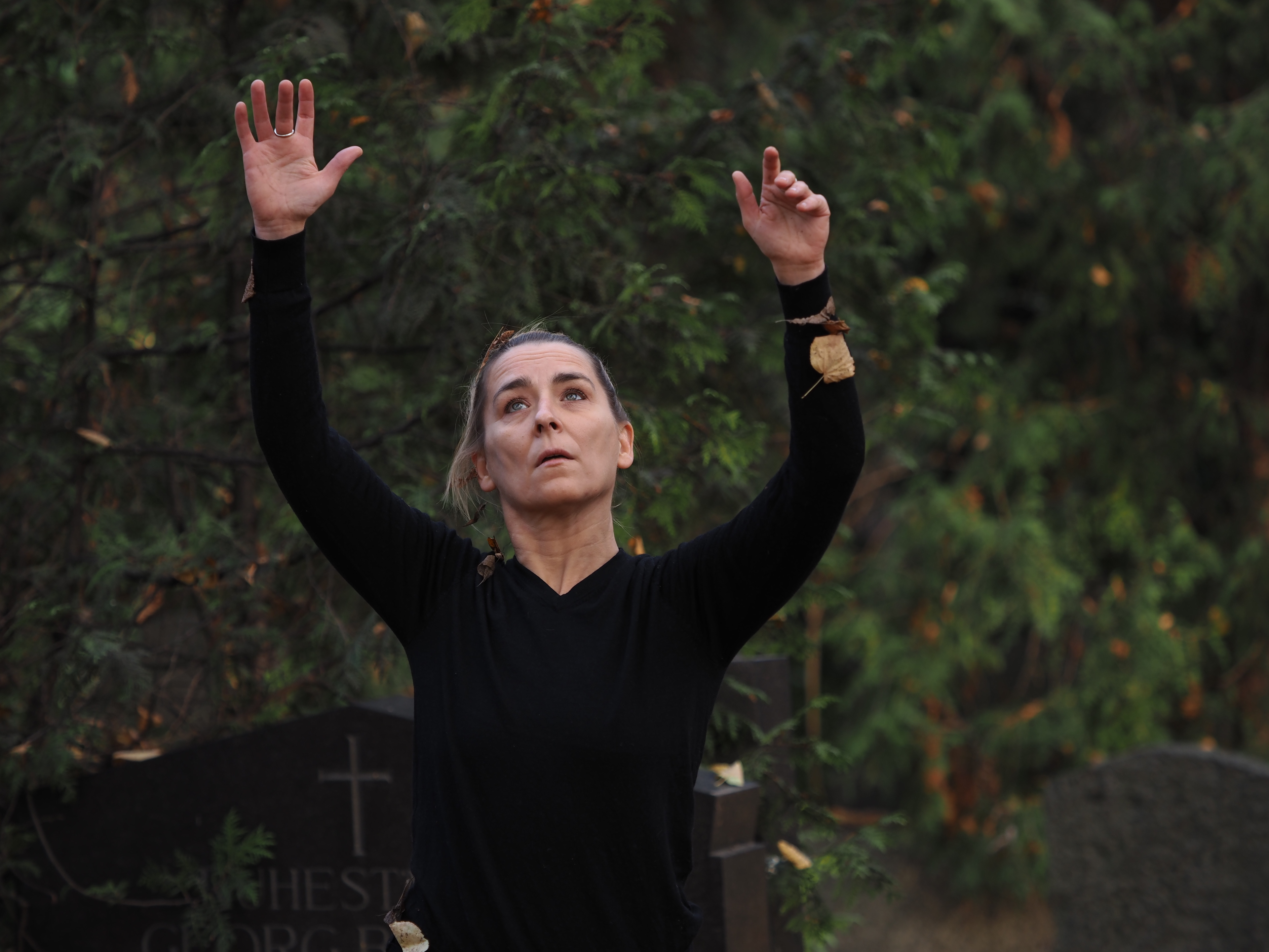 Trees Performed by Katja Richter, Sofia Sarmento & Rosalind Holgate Smith, as part of 'Walking through the Woods', an interdisciplinary exhibition at St Mariens Cemetery. Commissioned by the Verwalterhaus fur Aktuelle Kunst und Kultur in Berlin. Oct 30th 2021